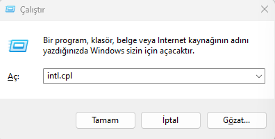 ► Aç kısmına "intl.cpl" yazın ve Tamam butonuna tıklayın.