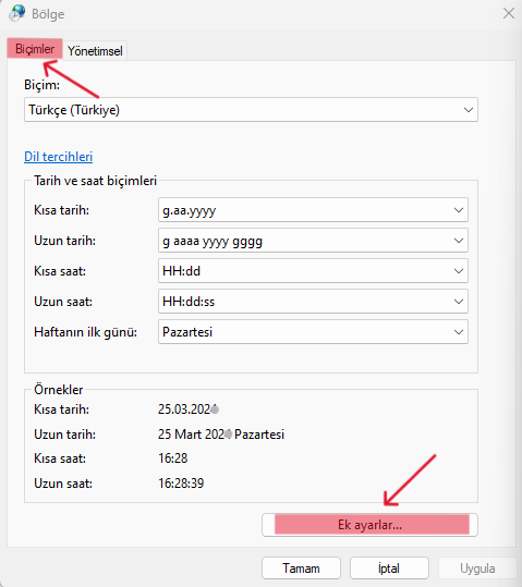 Ondalık sorununuz varsa alttaki yolu izleyerek ondalık simgesini nokta(.) yapabilirsiniz.
